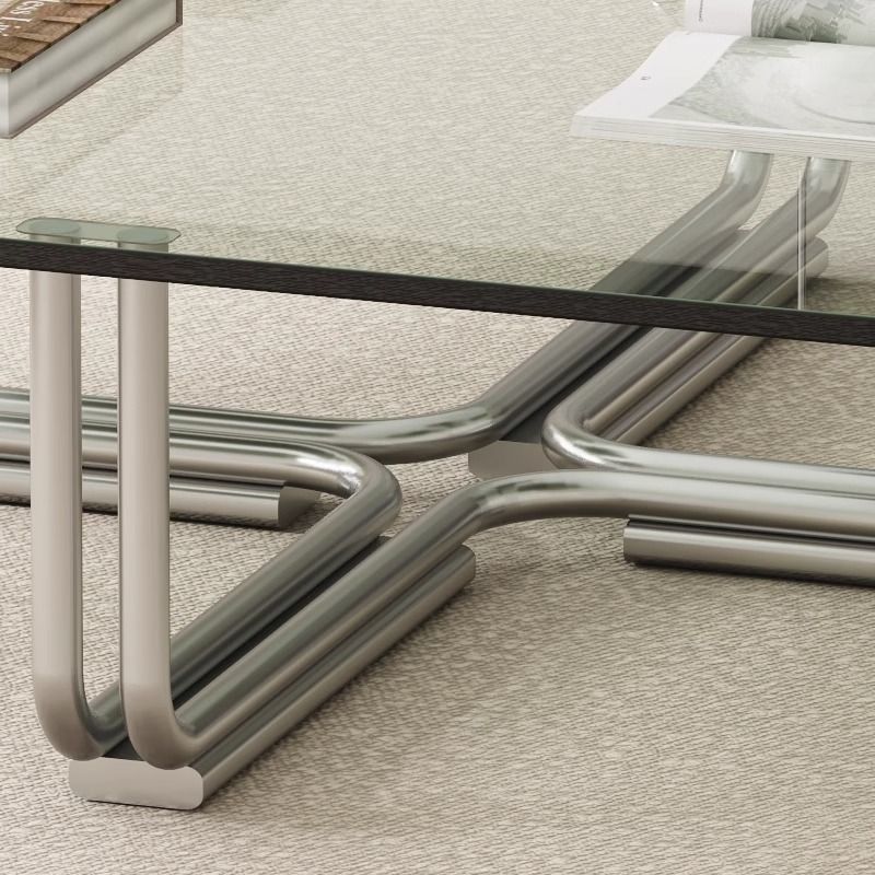 The Fistula square glass coffee table is the latest product from our line of coffee tables. Designed with minimum geometry in a modernist style, it has a low rise, a solid tempered glass top and four tubular rods keeping stable and sturdy. Inspired by Paul Mayen and Eileen Gray with her ‘Adjustable Table R-1027’, our designers have utilised modernist techniques to create a beautiful coffee table for your living space. Whether you’re obsessed with bauhaus or just a casual interior design fan, this coffee table is the accent home furniture piece you didn’t know you needed.